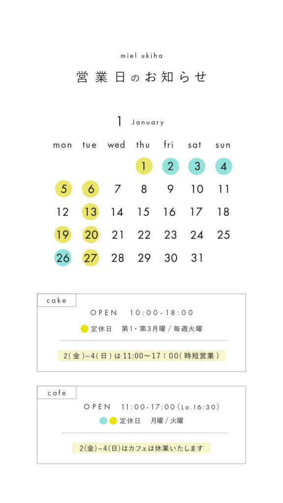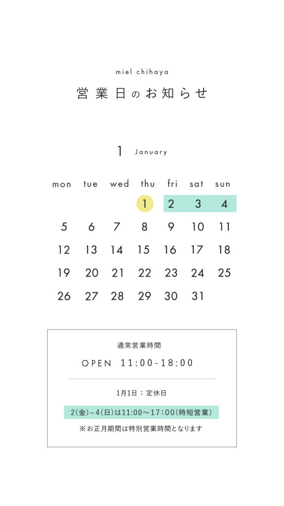 1月1日(木)は定休日です