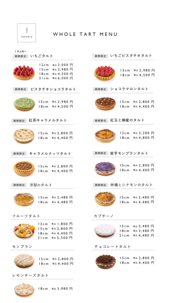 【1月のタルトのお知らせ】